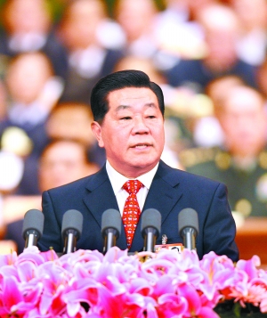 全国政协主席贾庆林代表政协第十一届全国委员会常务委员会向大会作工作报告。新华社记者 姚大伟摄