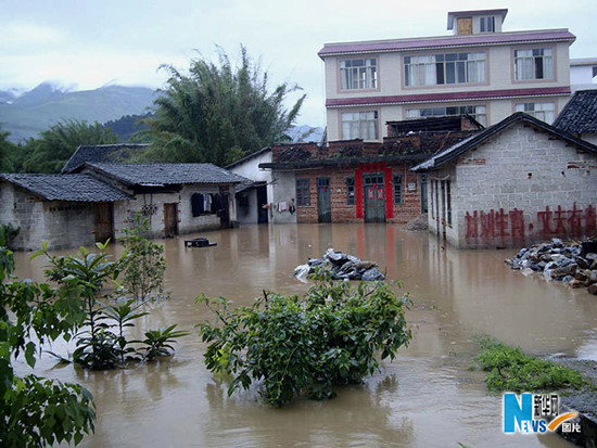 这是恭城瑶族自治县栗木镇上宅村被淹的房屋(5月14日摄)。受冷暖空气共同影响,5月13日至14日广西北部地区出现强降雨天气,部分地区出现200毫米以上特大暴雨。受强降雨影响,广西局部地区出现洪涝等次生灾害。 新华社发(文建军 摄)