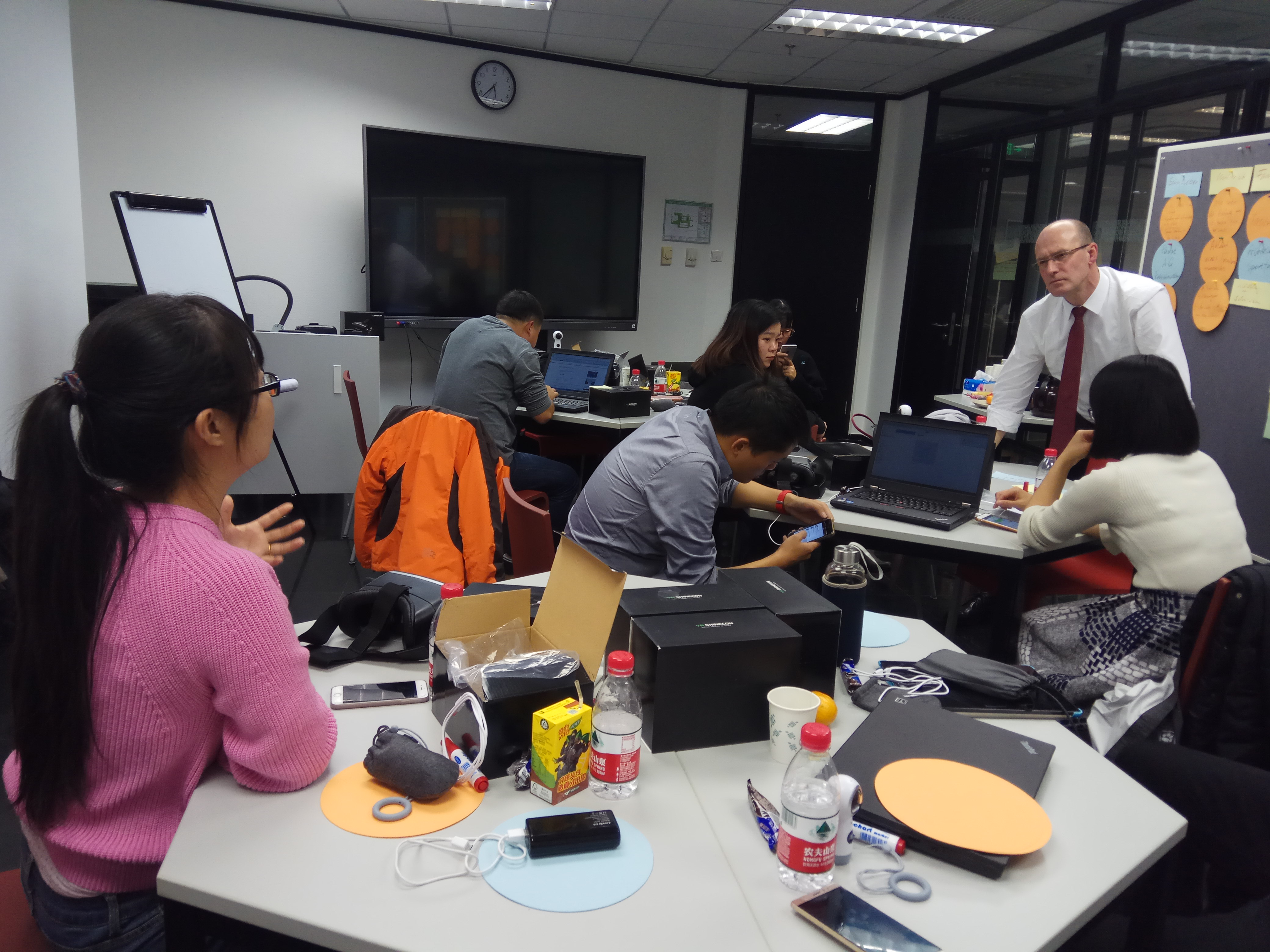 | 上个月11月6号,随吉老师去了趟北京,接收德国哥德学院赠送学校的gear 360相机和若干vr眼镜,到北京后匆匆吃了个快餐,马上就开始了培训,其实谈不上培训,主要讨论的是如何利用vr进行德语教学和交流,讨论了德国学生可能感兴趣的中国话题,参与会议的中国老师列举了我们学生可能感兴趣的话题,期间对360度视频拍摄的这个相机和后期处理进行了简单的介绍,老外还带大家到街头进行了实拍。