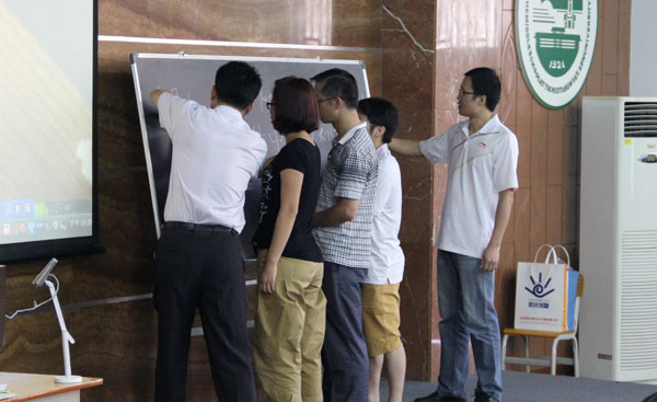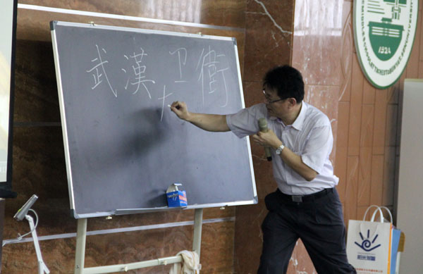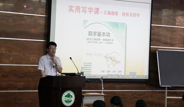 汉字是中华文化的缩影,而写好汉字更是学习和考试的基本必须。老师和学生人人在写字、天天在写字,可是据调查,对自己的书写水平不满意的人数达到73%。会书写、书写快、书写姿势正确、能对学生进行写字指导,对一个教师太重要了。8月25日下午,学校邀请了台湾的写字教学专家郑文彬(布衣)先生来讲学。
