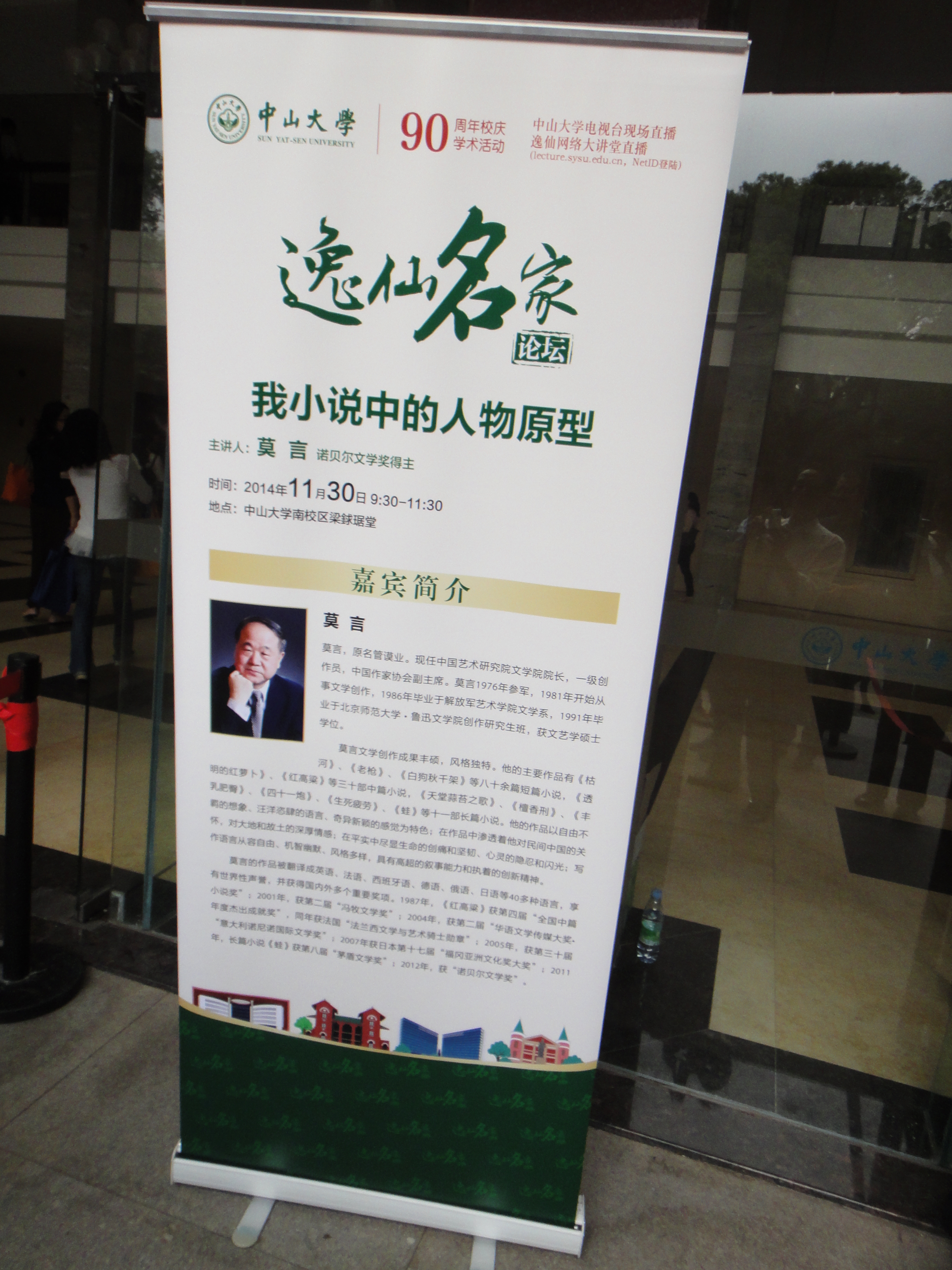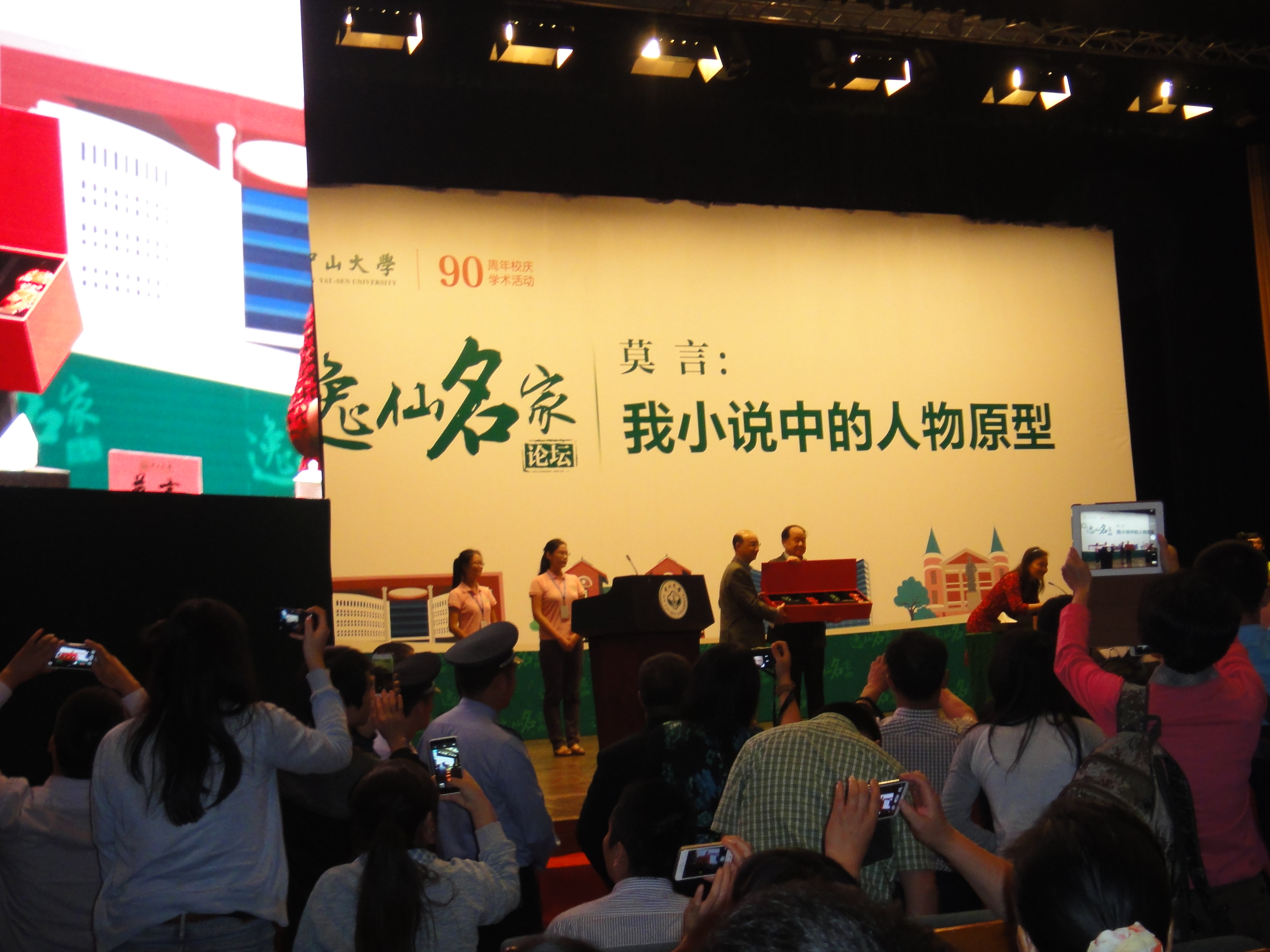得知莫言来中大,为中大90周年校庆添彩,和身边许多同仁一样,甚是兴奋,弯头挖角找人弄到两张票。